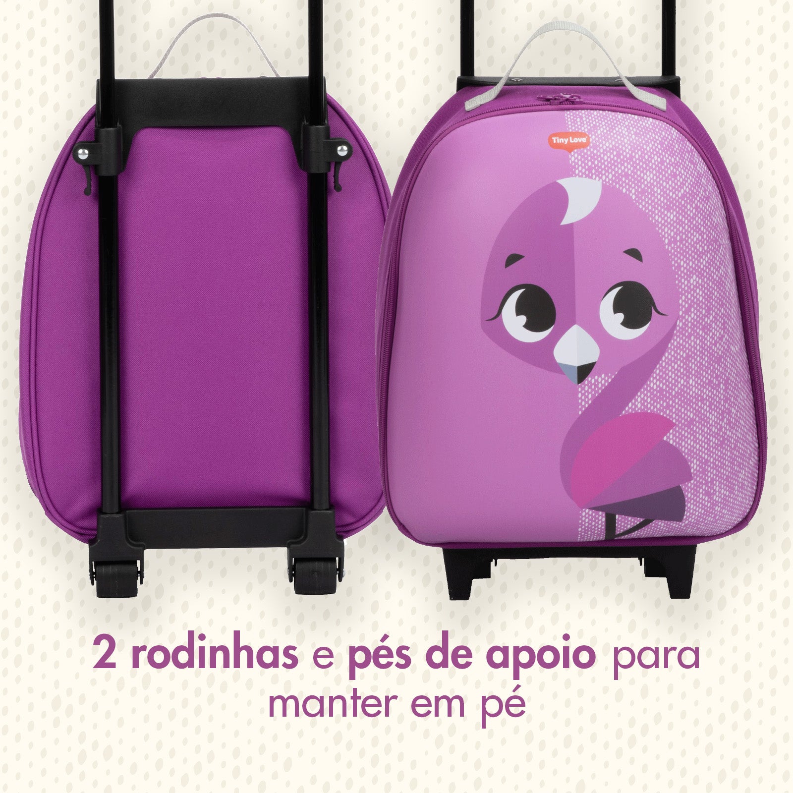 Para viajar, para ir para a escola, para qualquer lugar, a mala de rodinhas da Coleção Safari de Tiny Love está pronta para acompanhar a criança no que ela precisar. Com espaço amplo para guardar tudo que for preciso, ela é feita de material lavável e possui a face frontal mais rígida, que ajuda na proteção dos pertences e dá mais espaço para guardar o que for preciso.