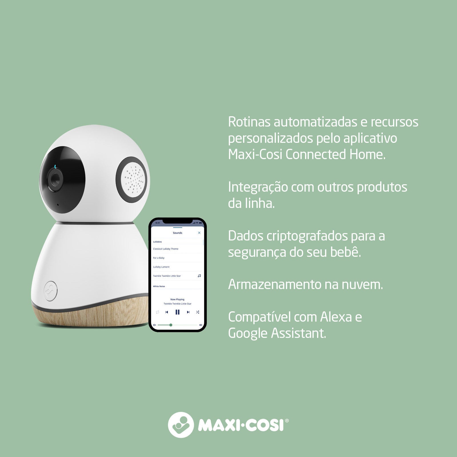 A See é uma babá eletrônica compatível com a Alexa, assim como os outros dispositivos da linha Conectada da Maxi-Cosi, o que possibilita que você tenha maior controle e mais possibilidades de monitoramento do local.