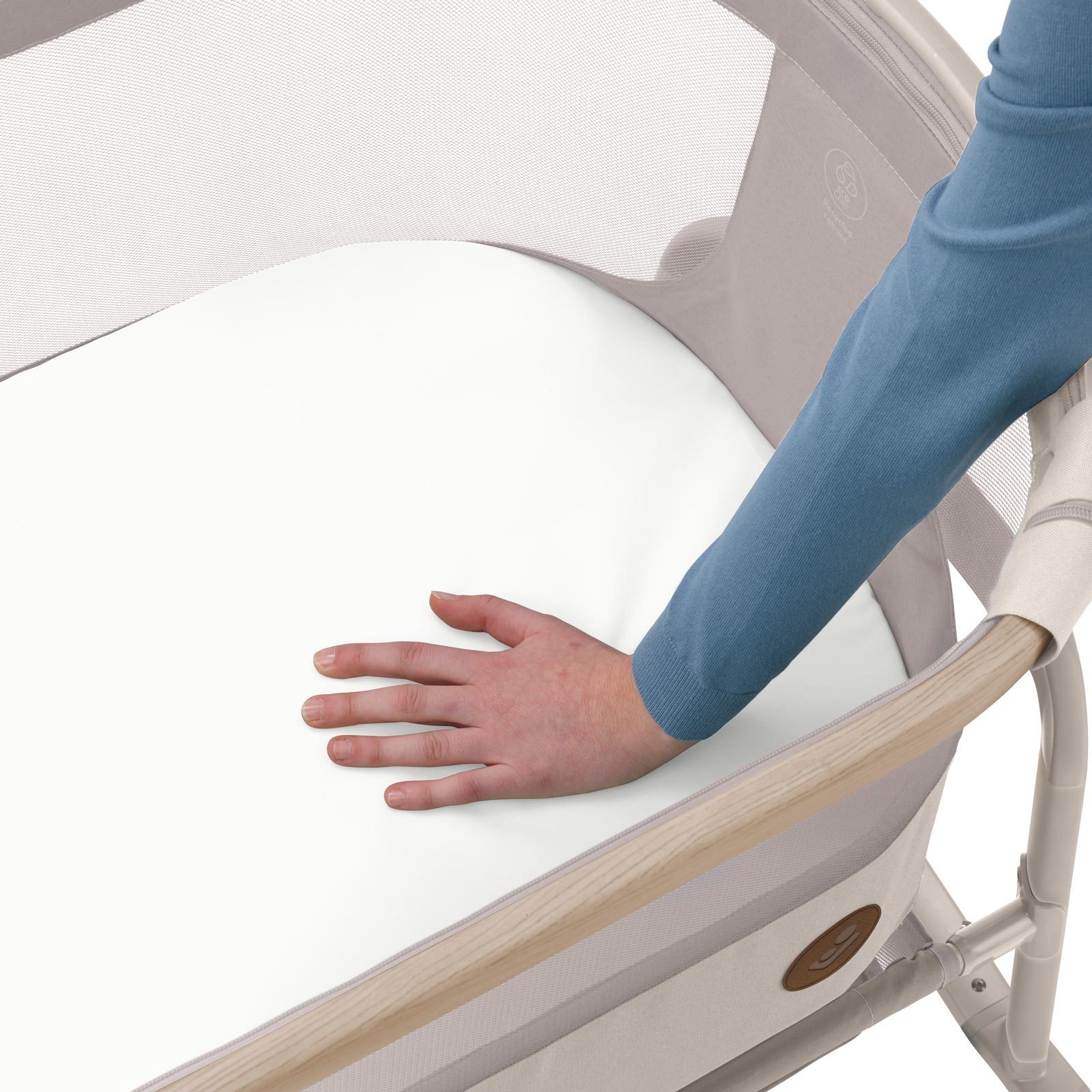 Além da função berço balanço, o Iora Air tem uma estética elegante e com efeito de madeira, encaixando-se nos ambientes domésticos. Feito em tecidos desenvolvidos a partir de garrafas plásticas 100% recicladas e com o sistema Eco Care, ele é amigável com o meio ambiente, além de ter muita qualidade e ser confortável.