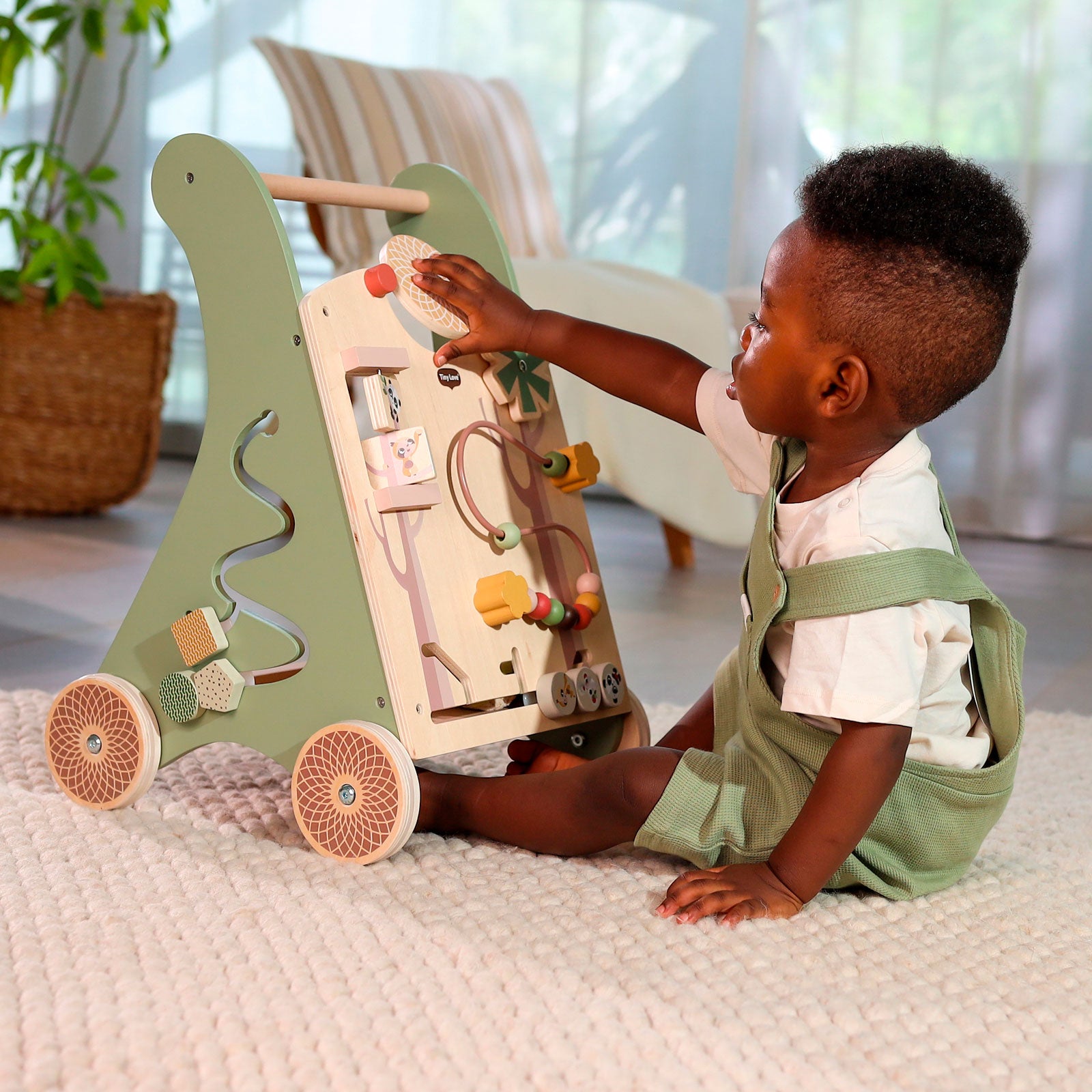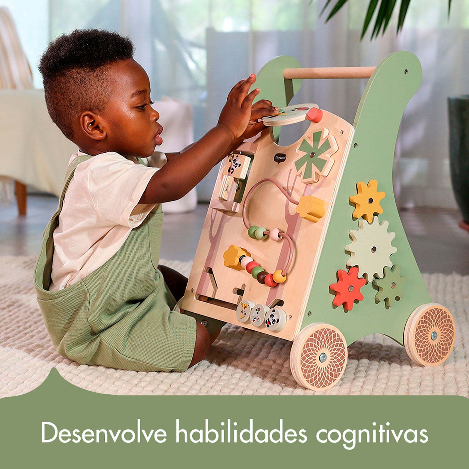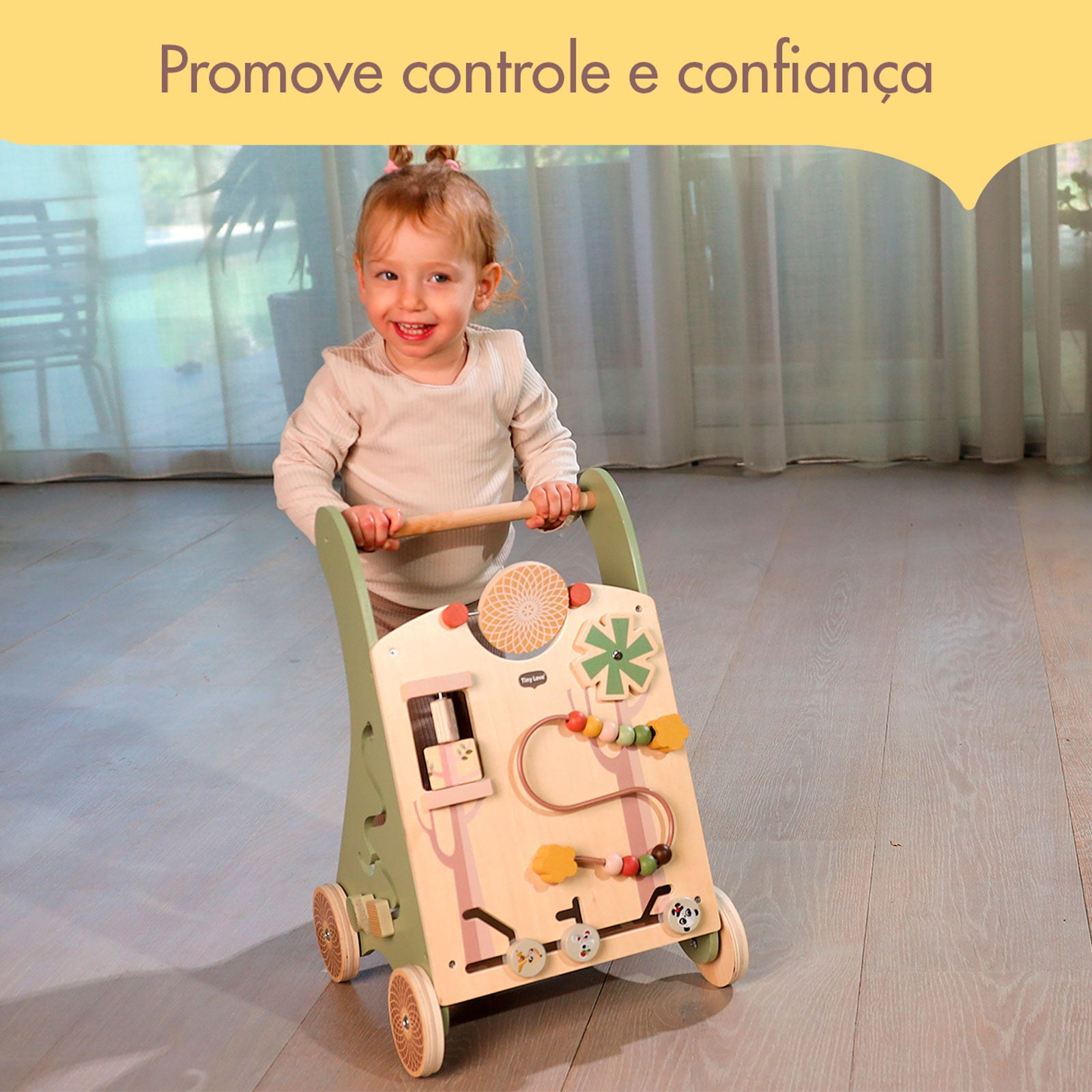 O Andador Multifuncional de Madeira Tiny Love acompanha o crescimento e promove o desenvolvimento do seu pequeno com uma ampla seleção de atividades interativas, além de contar com rodas de aro de borracha antiderrapantes.