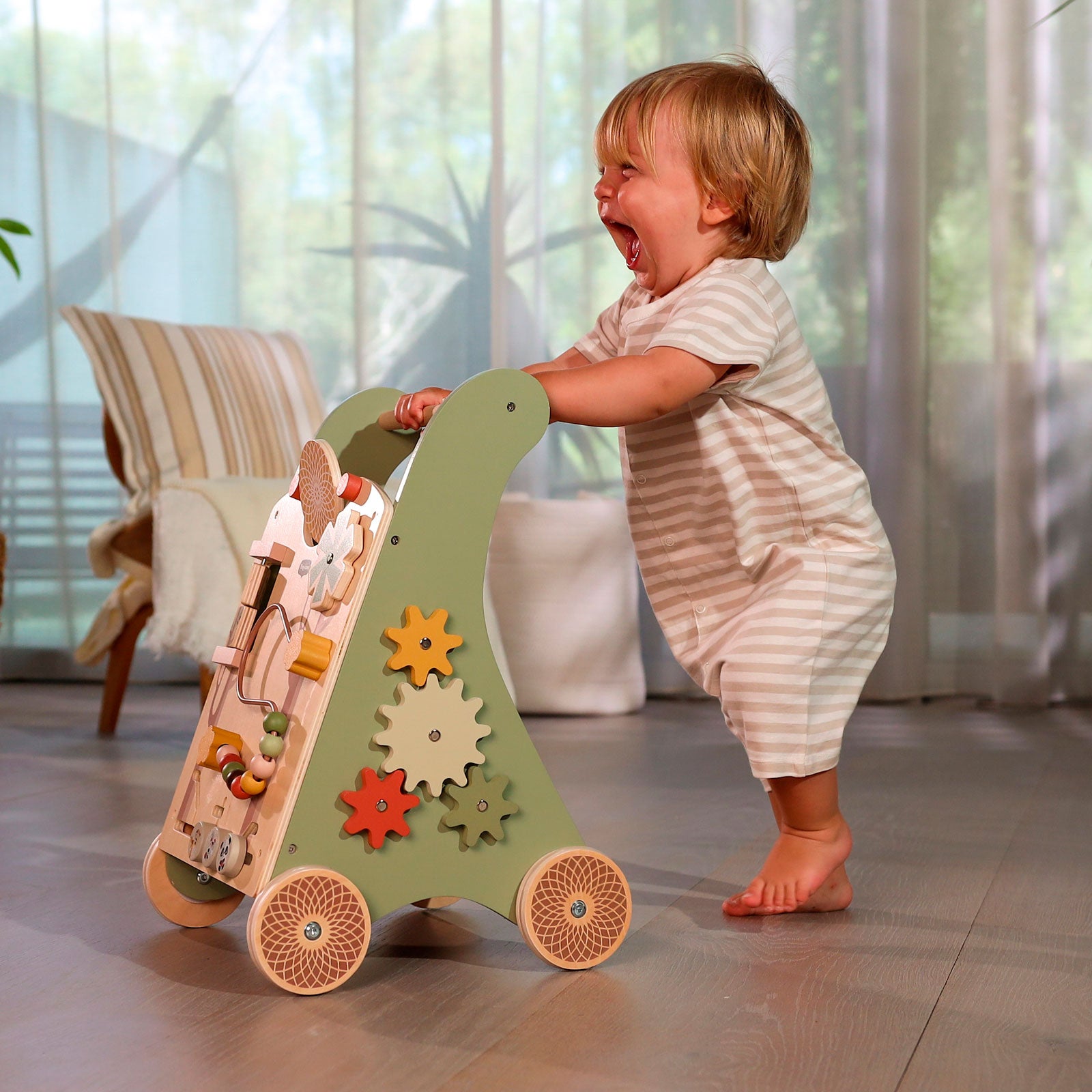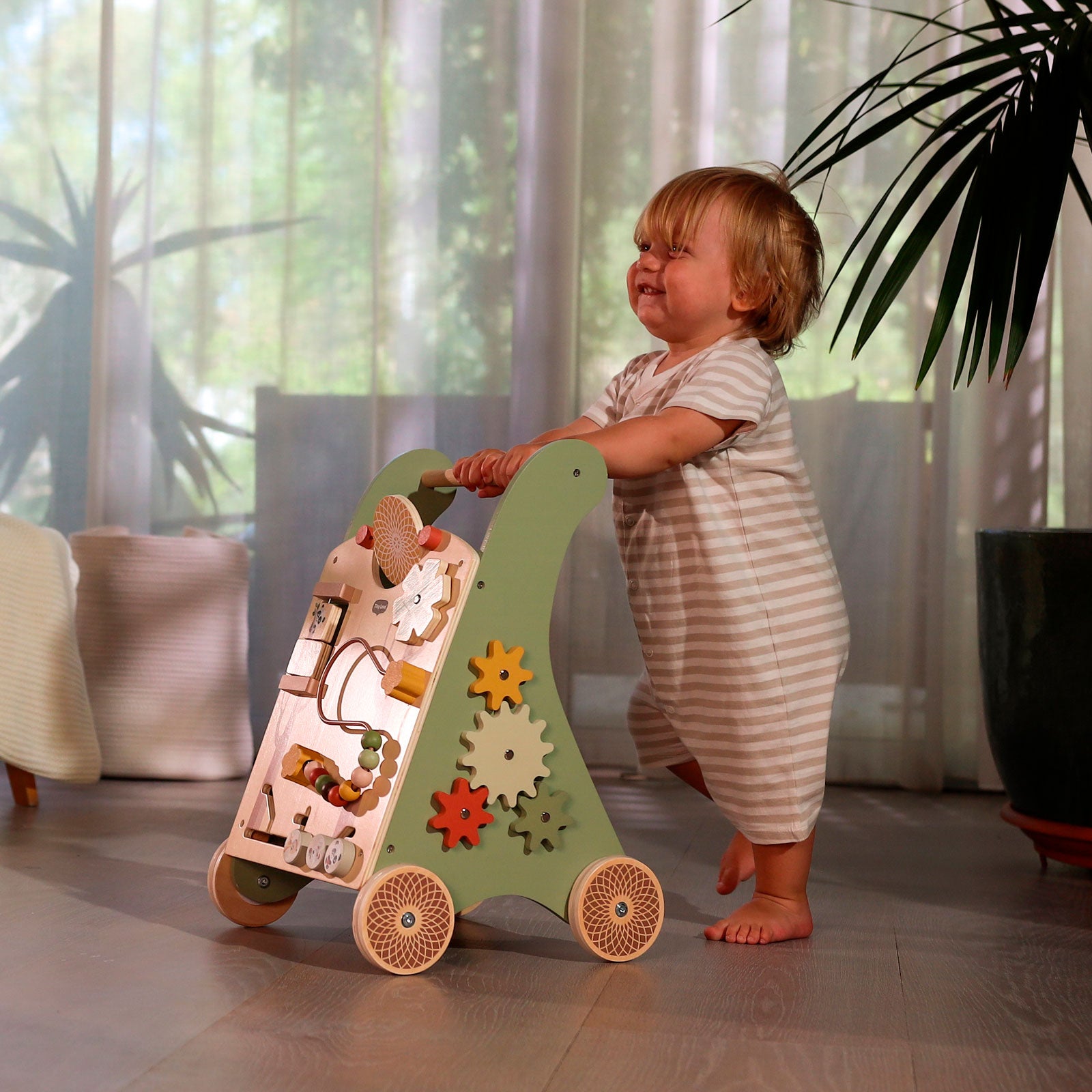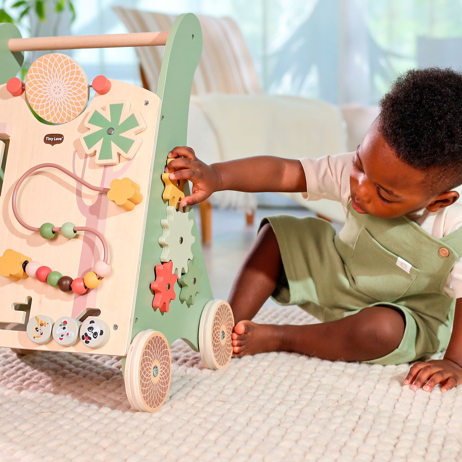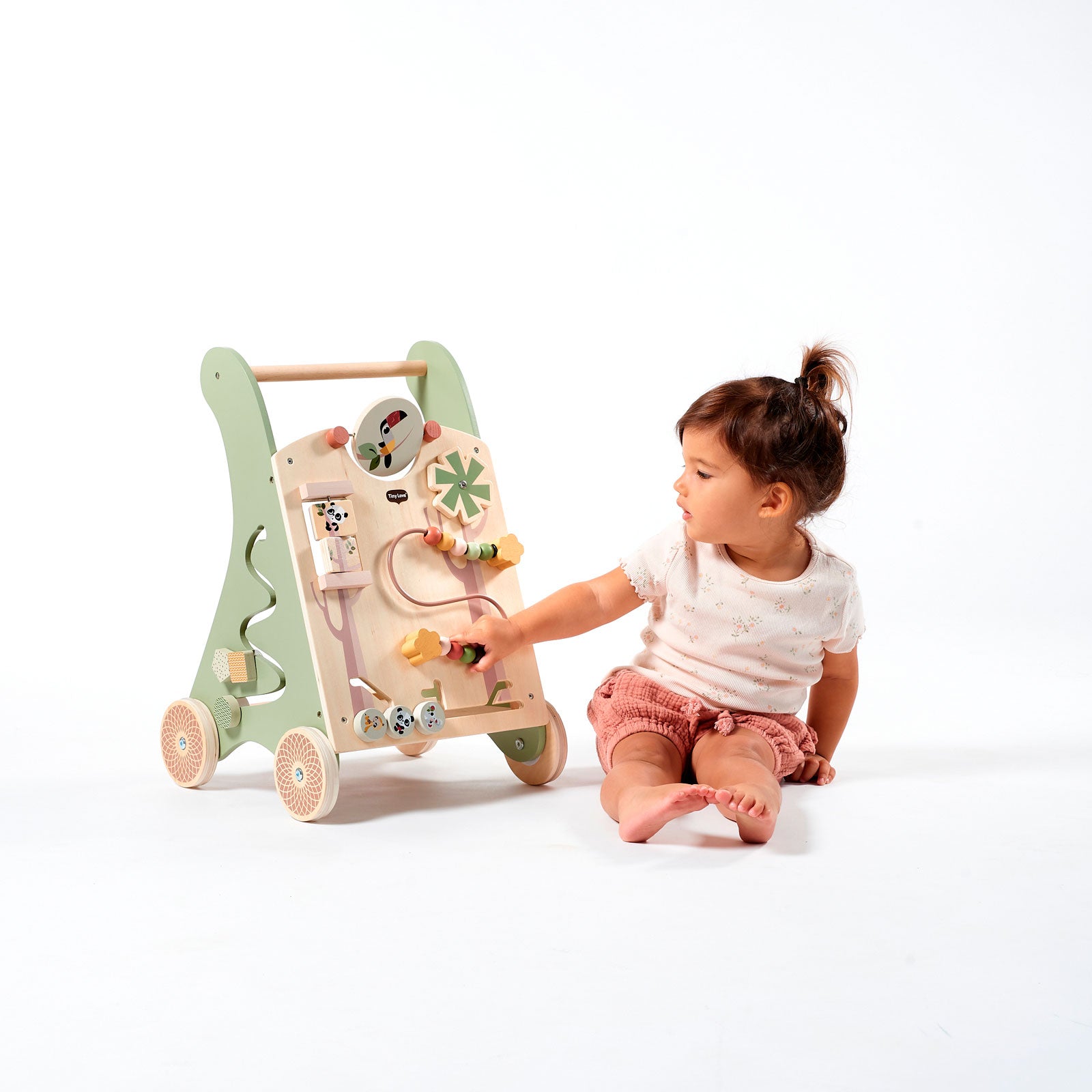 O Andador Multifuncional de Madeira Tiny Love acompanha o crescimento e promove o desenvolvimento do seu pequeno com uma ampla seleção de atividades interativas, além de contar com rodas de aro de borracha antiderrapantes.