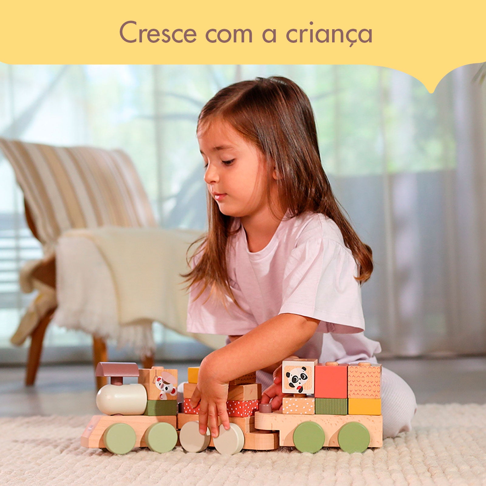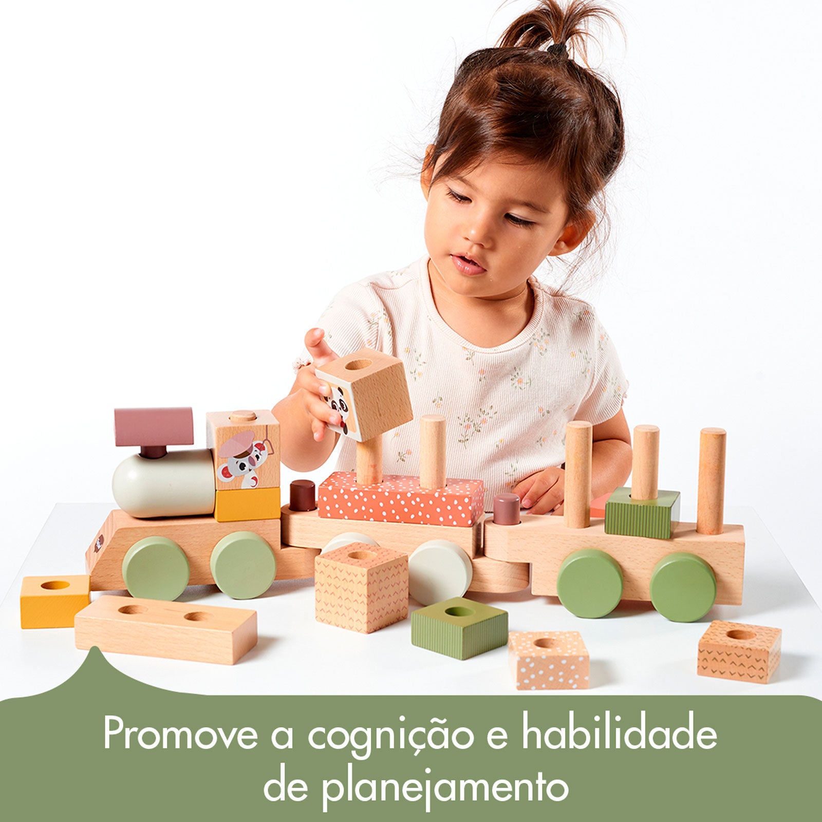 O Trenzinho de Madeira é o presente perfeito, combinando atividades de empilhamento com um divertido brinquedo em formato de trem.