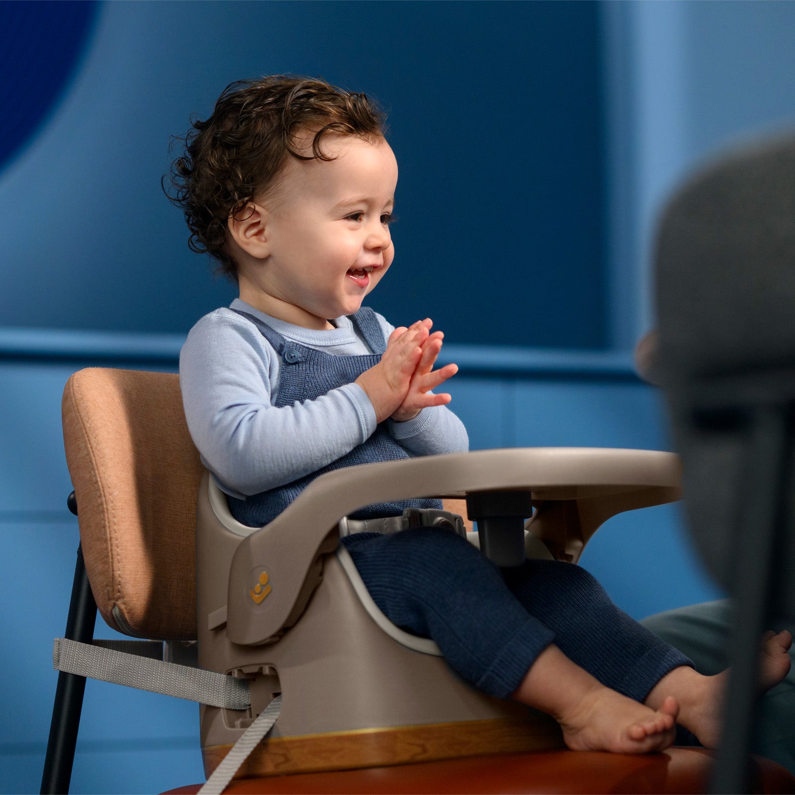 A cadeira de refeição Jay foi criada para acompanhar os primeiros anos com elegância e praticidade. O design 2 em 1 oferece a flexibilidade de ser usada como cadeira de mesa para as refeições ou como assento de chão, adaptando-se com segurança a diferentes momentos do dia.
