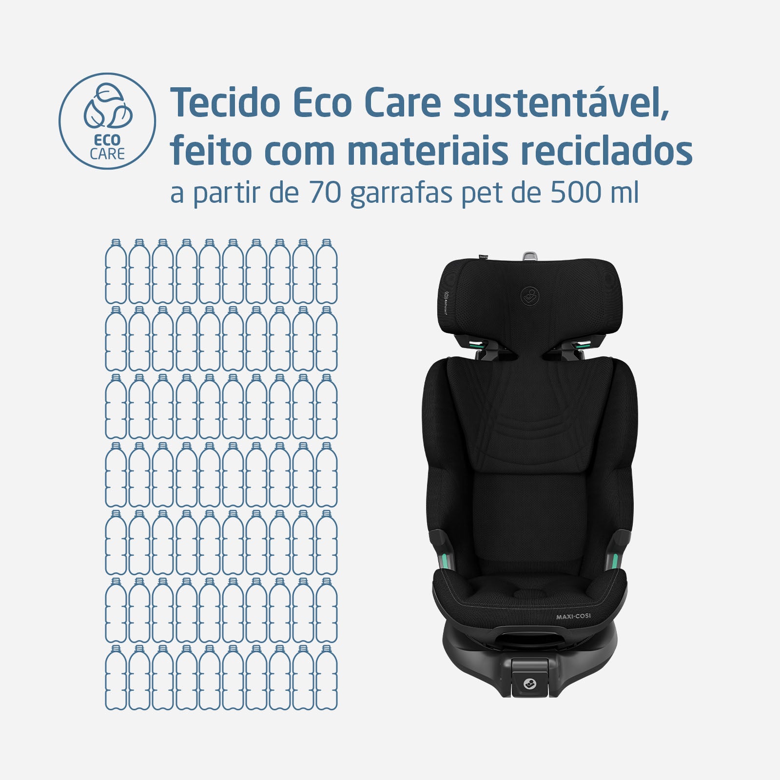 A instalação é fácil e segura graças ao sistema ISOFIX com perna de apoio integrada. Os tecidos 100% reciclados reforçam o compromisso com a sustentabilidade, enquanto a capa lavável à máquina mantém a cadeira sempre limpa e confortável.