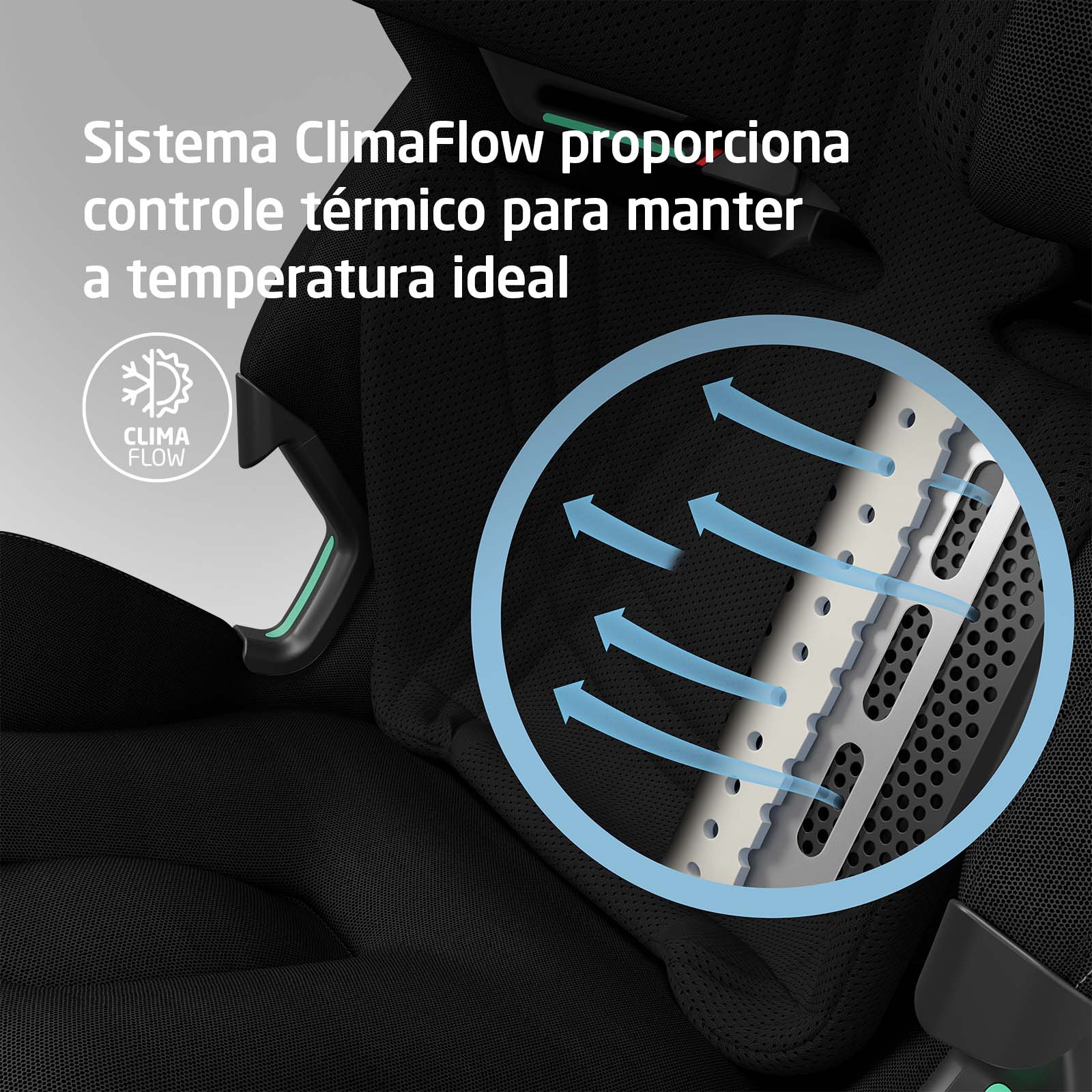 O sistema ClimaFlow garante controle térmico, mantendo a temperatura sempre agradável para a criança. A proteção lateral G-CELL oferece segurança contra impactos, enquanto o sistema AirProtect® protege a cabeça. Além disso, a cadeira conta com cinto de 5 pontos Easy-In e recline em 5 posições, garantindo mais segurança e tranquilidade em todos os passeios.