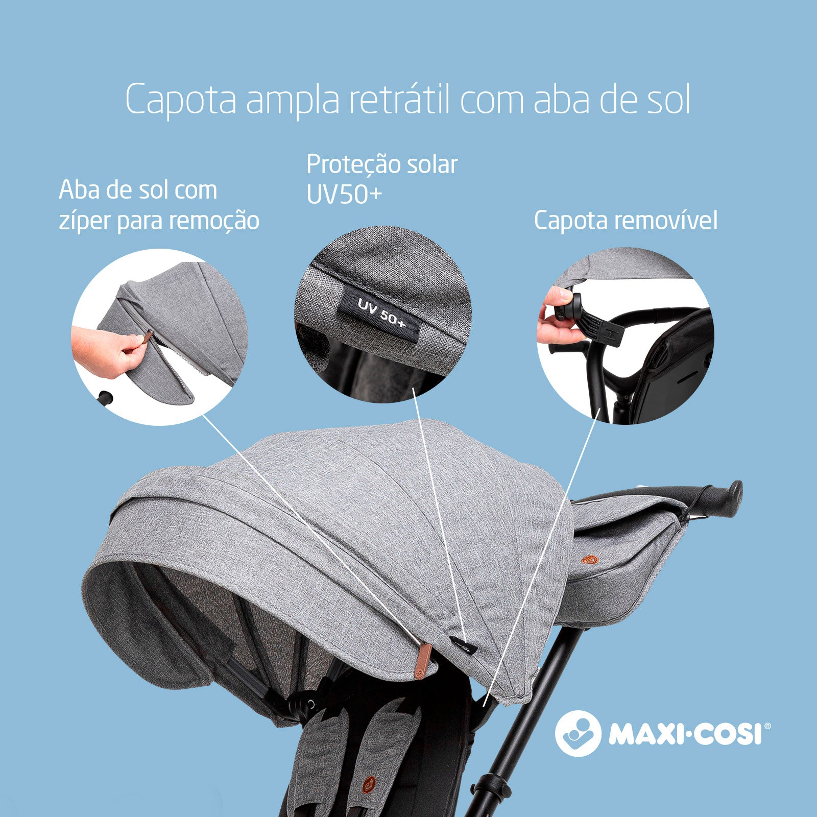 Seu design moderno e sofisticado, com logo metalizado, tecido premium e bordados exclusivos, adicionam um toque especial aos momentos de passeio. Saiba mais sobre este modelo que faz parte da linha Luxe da Maxi-Cosi.