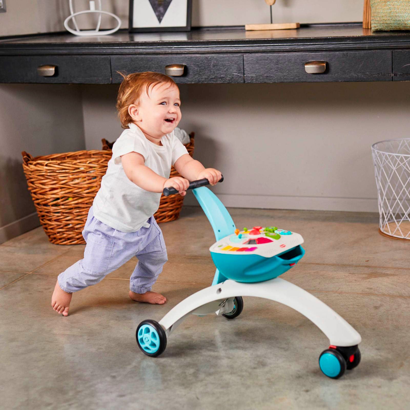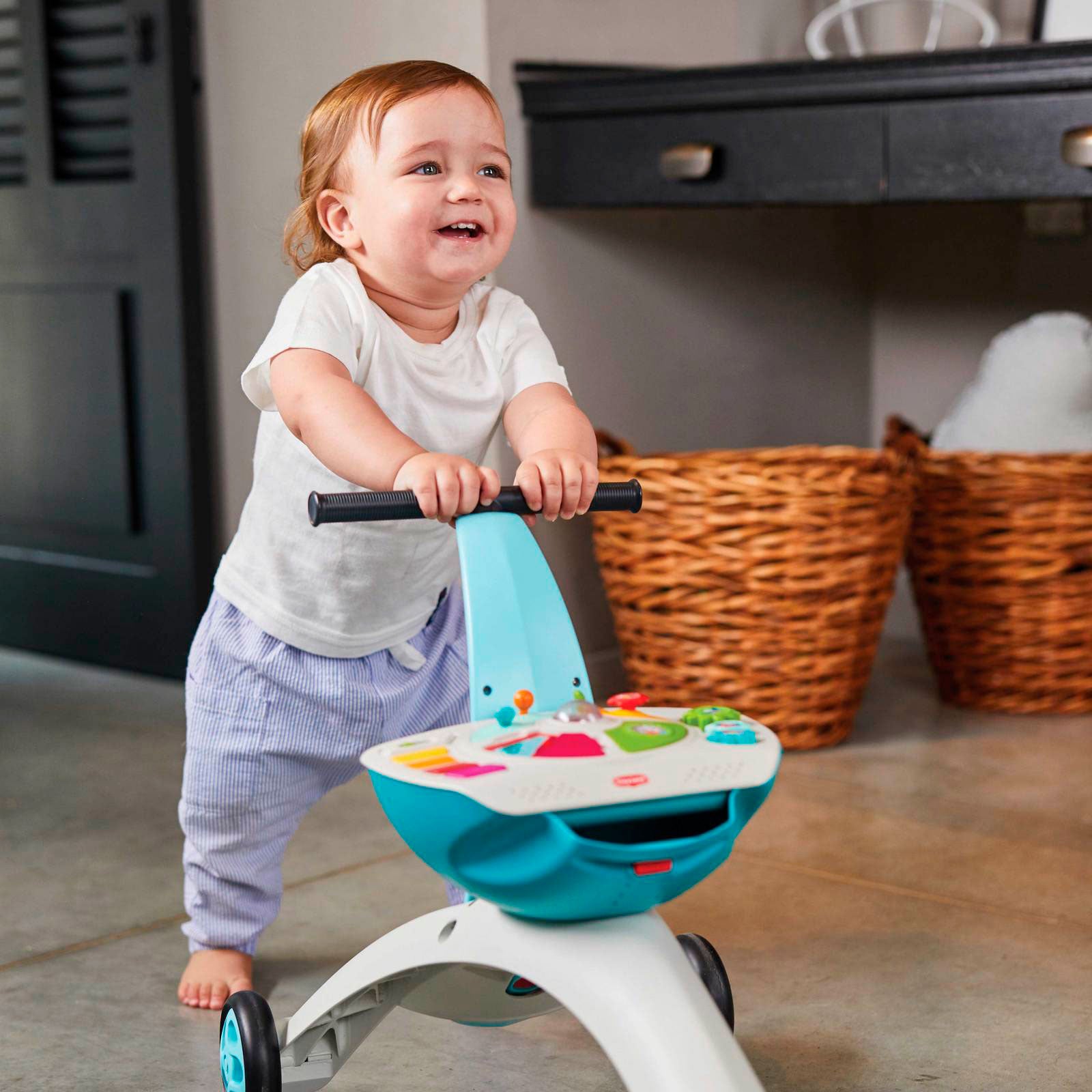 Empurrar: Seu filho pode andar de forma independente, ficando por atrás do andador e o empurrando, usando a cesta para carregar seus brinquedos e pertences favoritos.