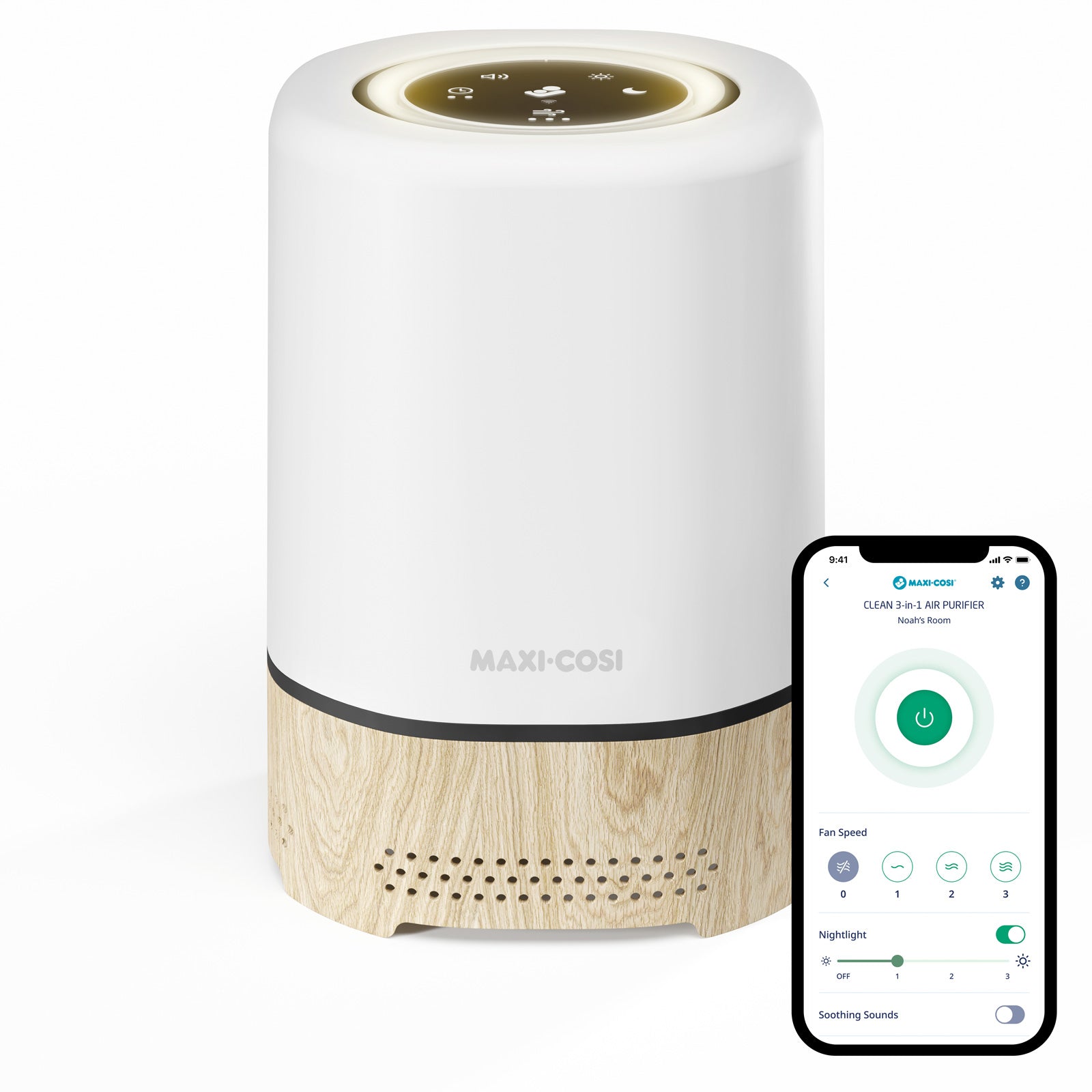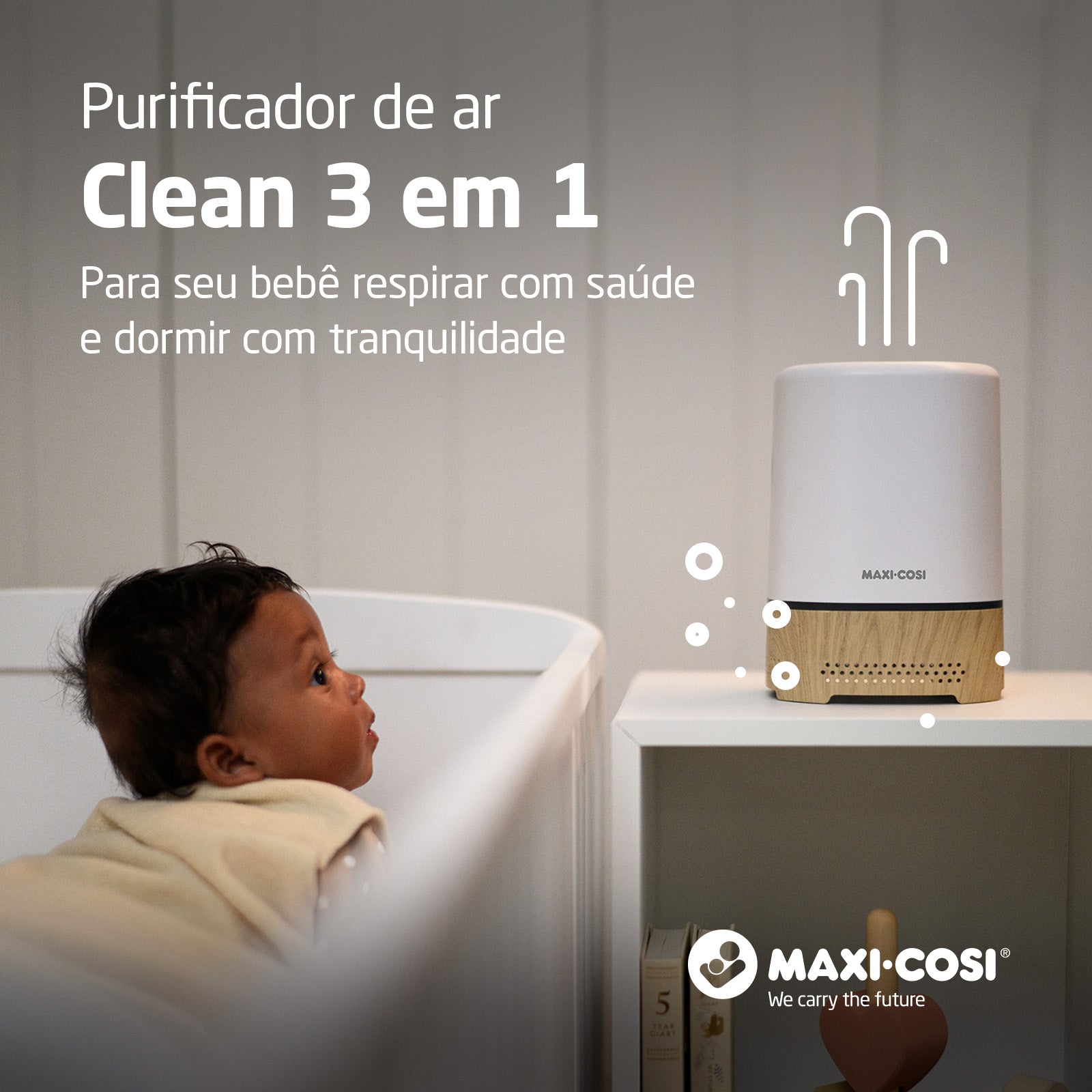 Transforme a casa e o quarto do bebê em um local calmo, tranquilizante e livre de alérgenos com o Purificador de Ar Clean 3 em 1 da Maxi-Cosi.