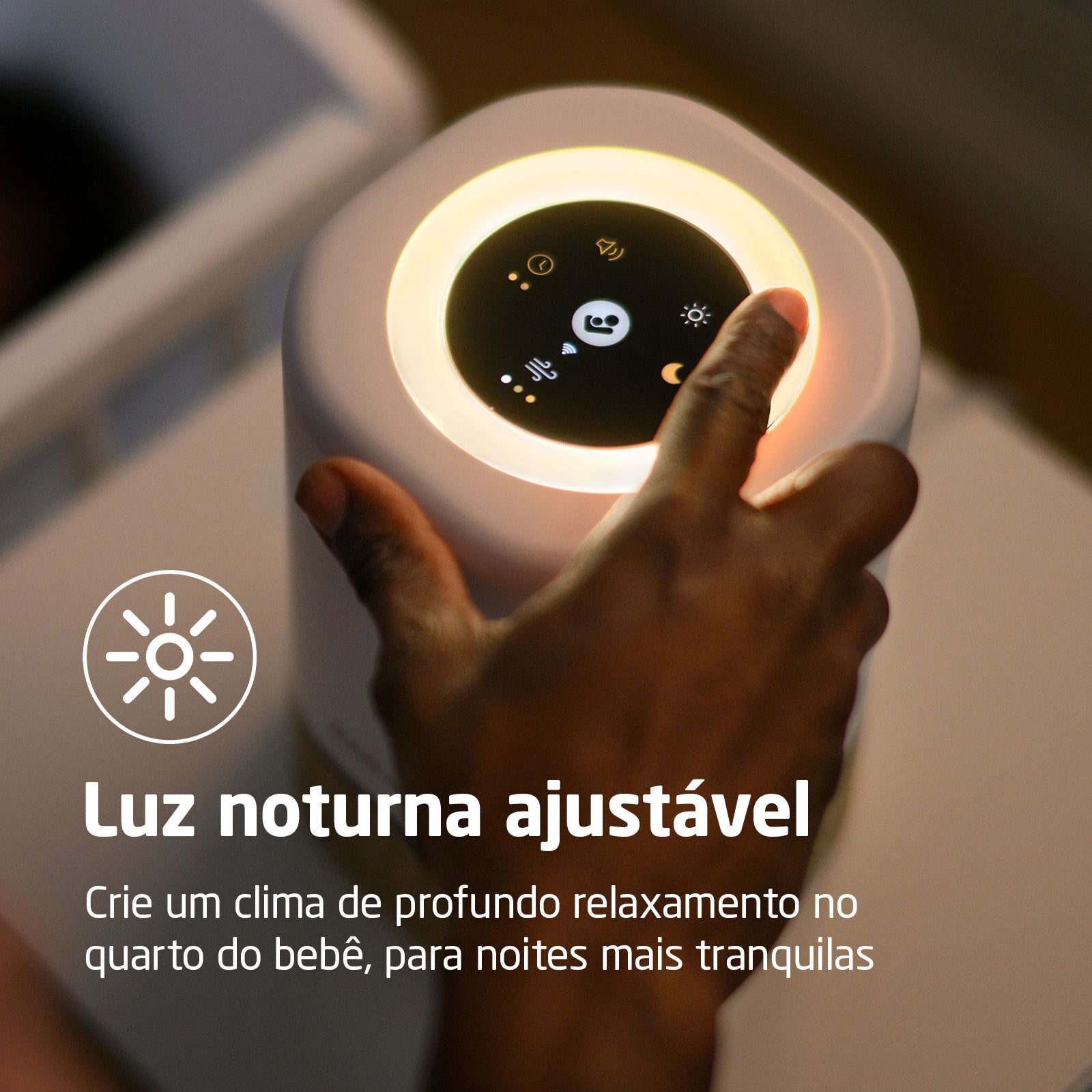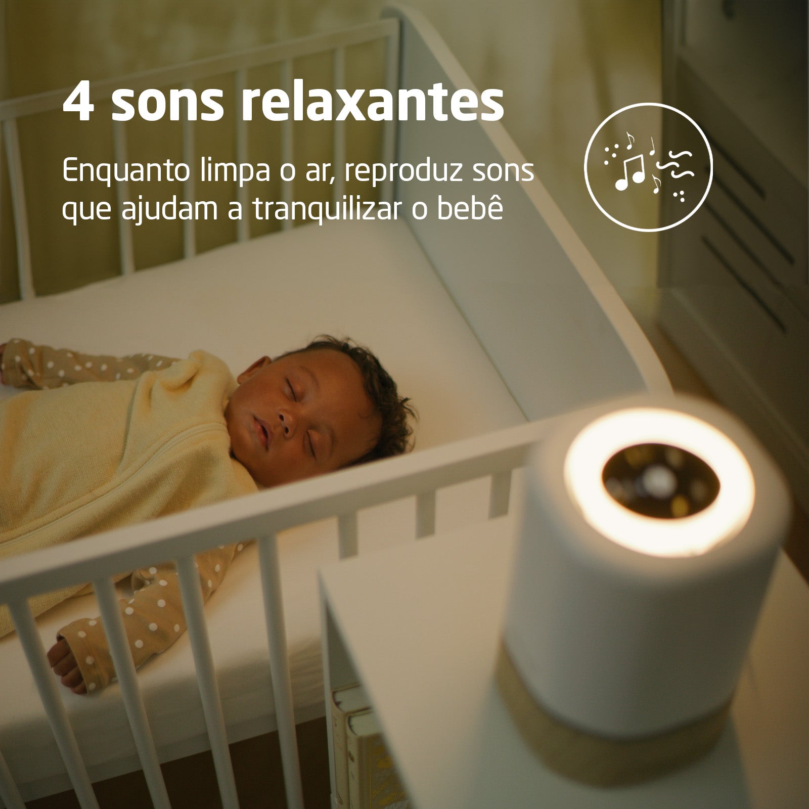 Além de purificar o ar, o Purificador de Ar Clean 3 em 1 tem funções que ajudam a criar um ambiente perfeito de relaxamento e calma dentro do quarto do bebê. Ele possui luz noturna ajustável, que proporciona um clima aconchegante durante a hora do sono. Além disso, ele também toca 04 sons suaves contribuindo para um quarto tranquilo e com ar puro.