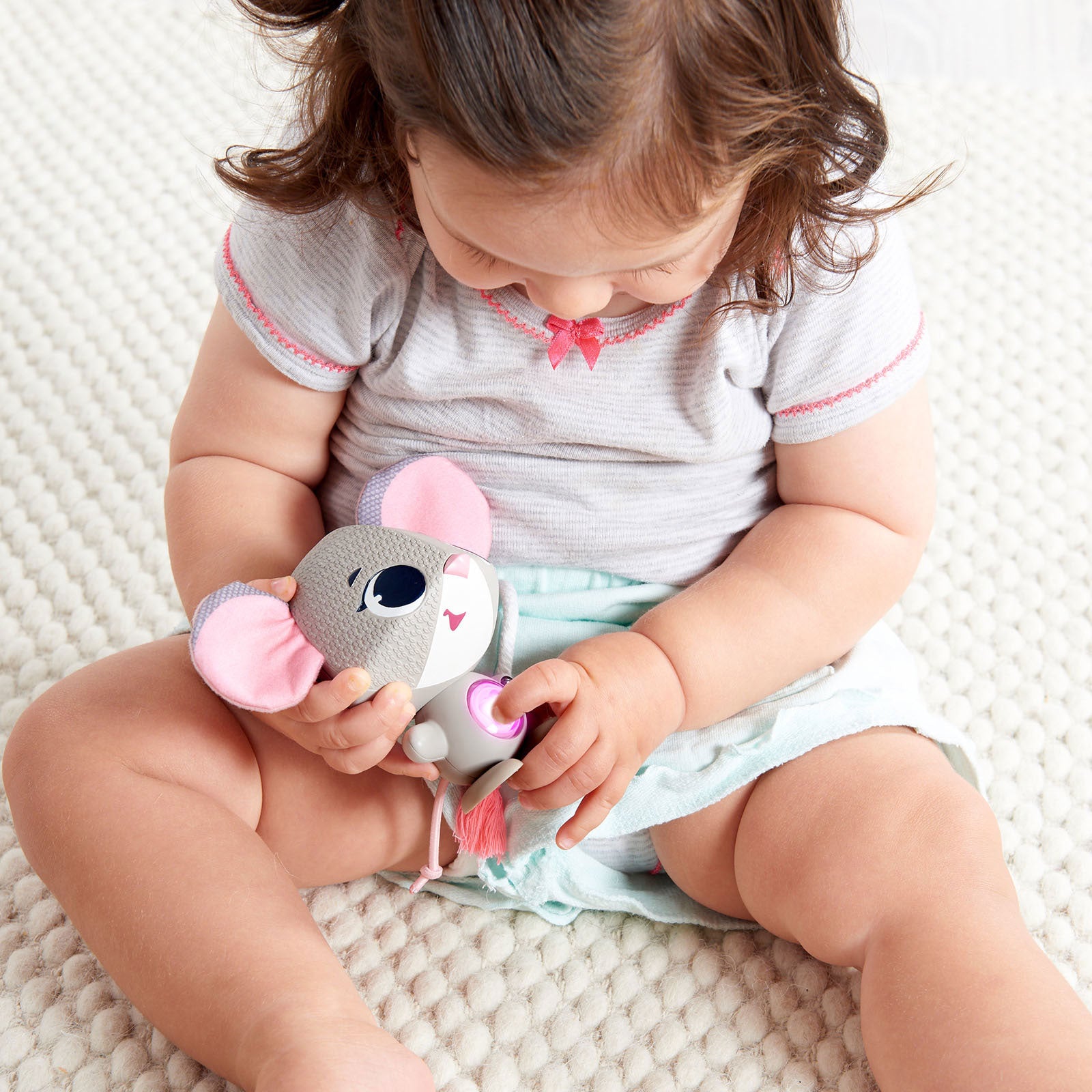 2- Faça cócegas: aperte sua barriguinha para o ver brilhar e se divertir com suas gargalhadas.