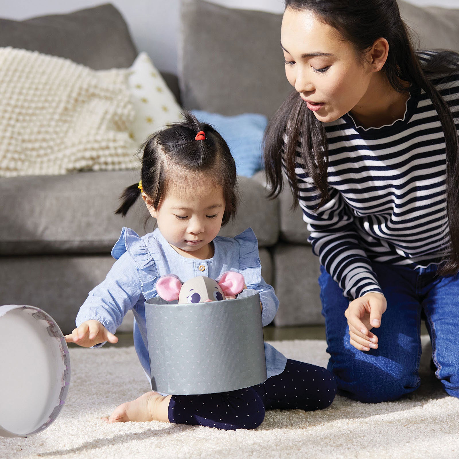 1- Brinque de esconde-esconde: cubra o seu amiguinho e ele irá chama-lo e comemorar quando for descoberto.