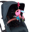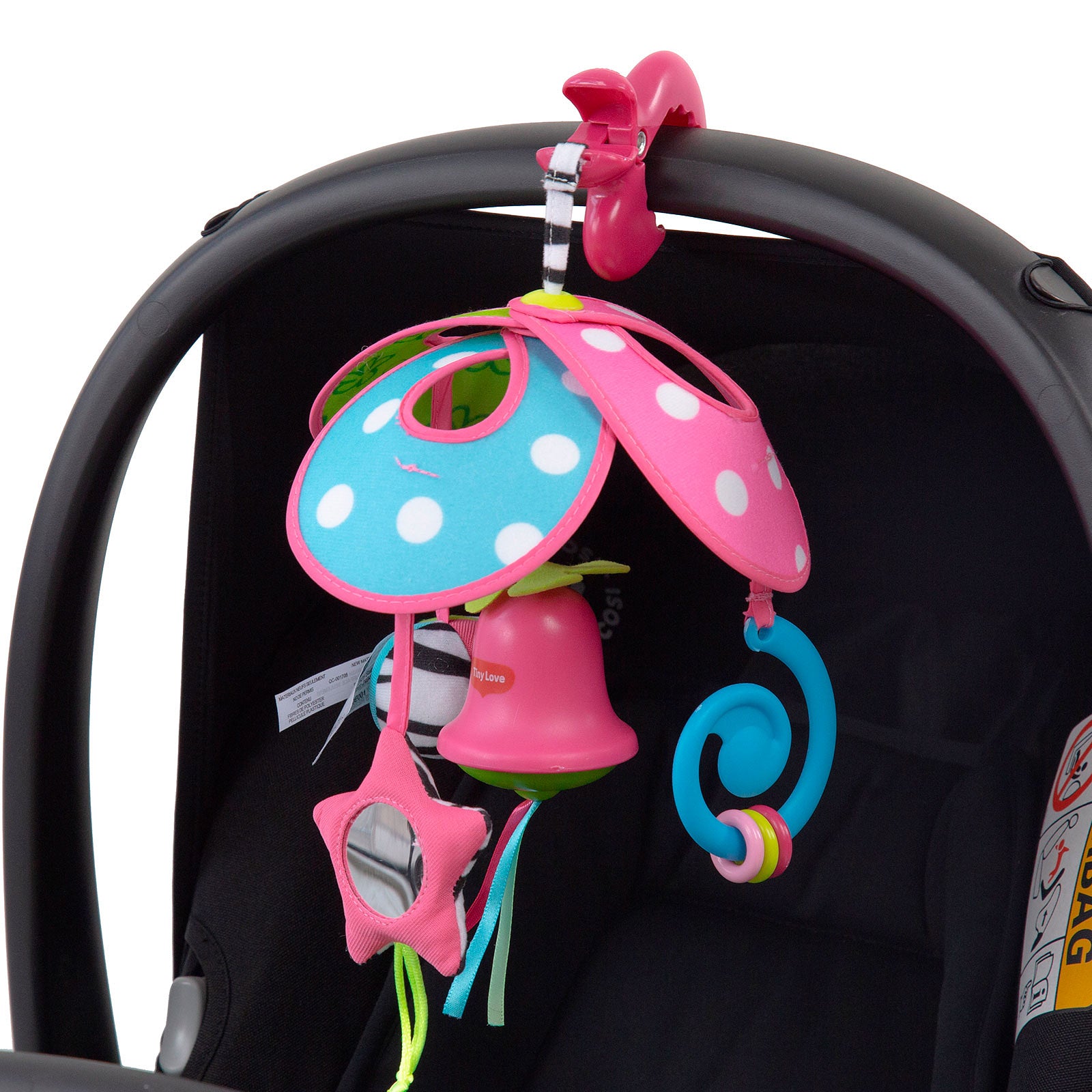 é perfeito para ser instalado na capota do carrinho, ficando no campo de visão do bebê. Ele estimula a cognição e os sentidos, em exclusivo design preto e branco.