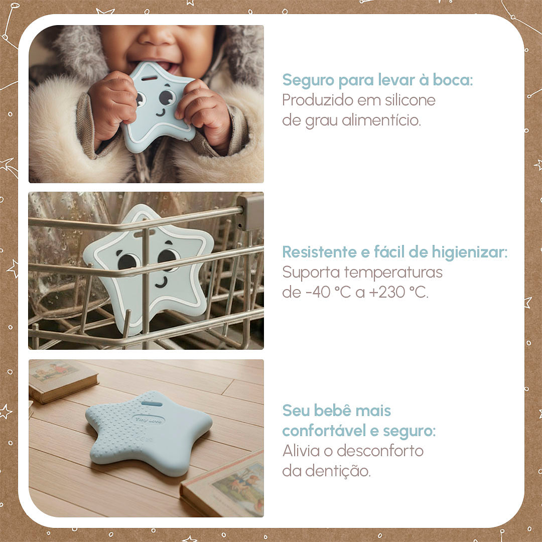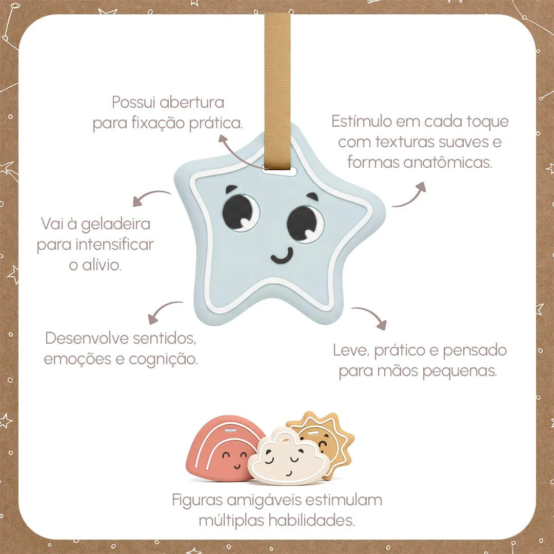 O início da dentição é um dos marcos mais sensíveis do desenvolvimento do bebê e um período que pede acolhimento, segurança e estímulo. Os Mordedores Magical Skies foram criados para atuar exatamente nesse momento, oferecendo alívio ao desconforto das gengivas ao mesmo tempo em que despertam múltiplas habilidades.